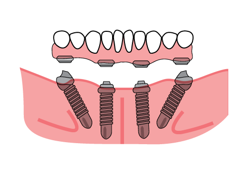 При обычной имплантации под каждую коронку ставят отдельный имплант. Если зубов мало или совсем нет, такое лечение обходится дорого и занимает много времени. При имплантации All-on-4 несъёмный протез устанавливают всего на 4 импланта. Это стоит в 4 раза дешевле обычной имплантации, но не уступает ей по качеству.