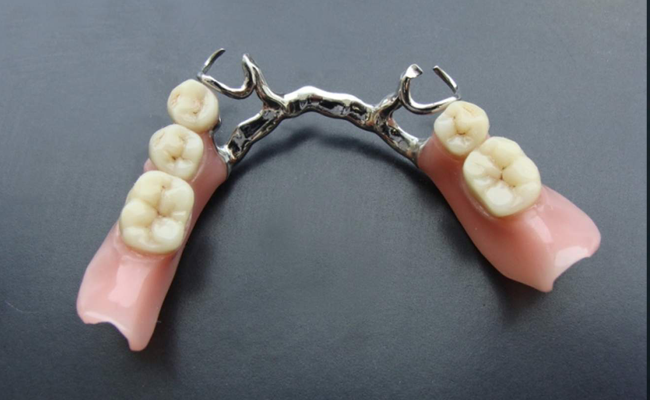 Бюгельные протезы состоят из нескольких частей: дуги из металла или бюгеля, которая служит основой для пластмассовой акриловой десны, а также зубных коронок.