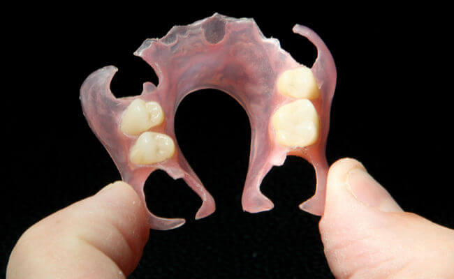 Протез невозможно закрепить исключительно на деснах – из-за наличия металлического базиса такие протезы прилегают к деснам не так плотно, как созданные из мягких и эластичных пластмасс.